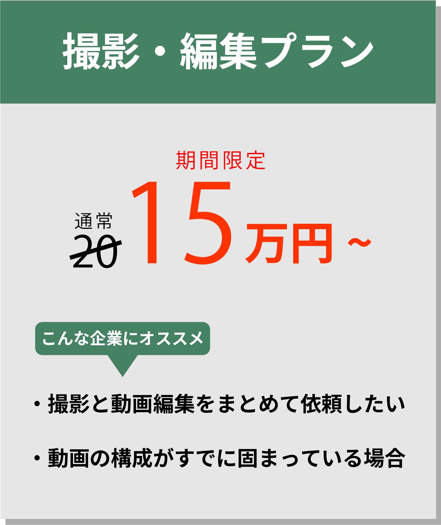 A. 自社オフィスやイベント会場など、ご希望の場所へこちらが伺います。ロケーションの選定相談も可能です。Q. 撮影のみ・編集のみの依頼もできますか?